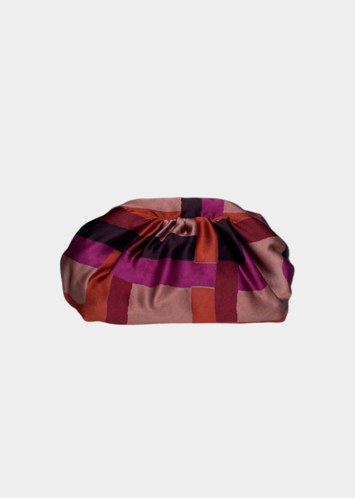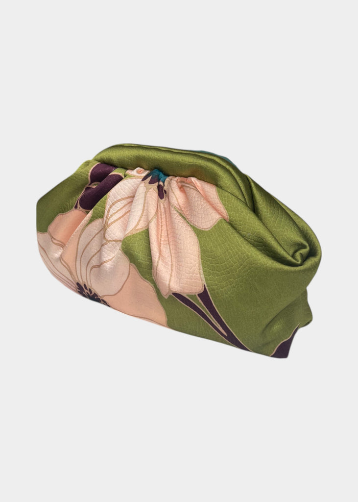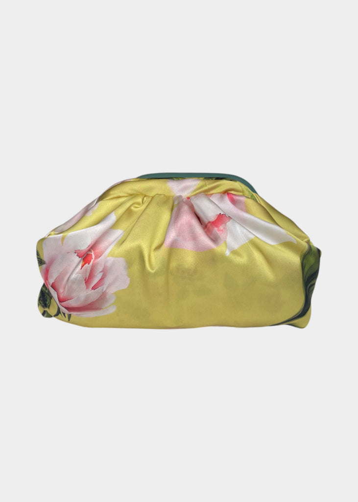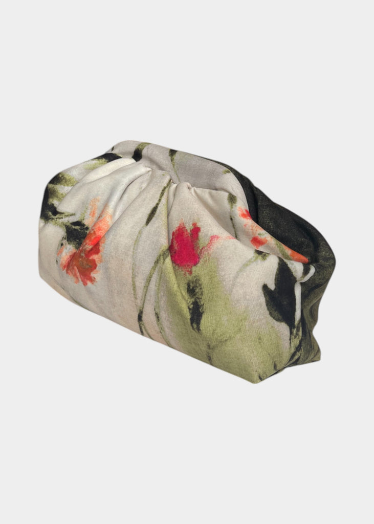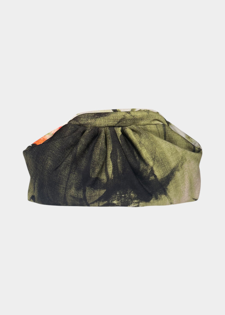 Borsa in tessuto con chiusura a scatto e tracolla rimovibile.