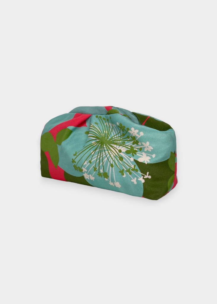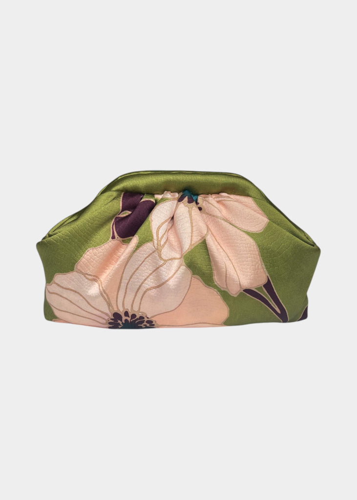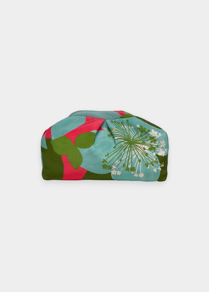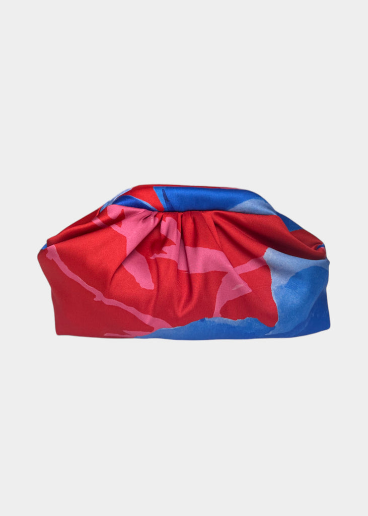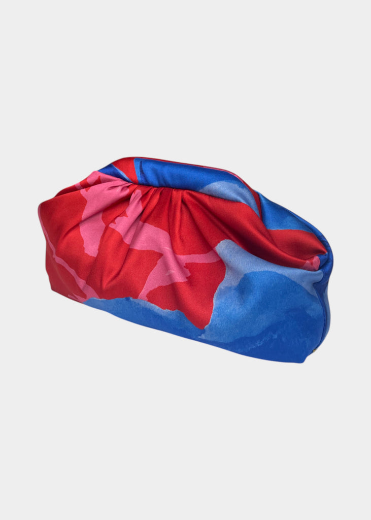Borsa in tessuto con chiusura a scatto e tracolla rimovibile.