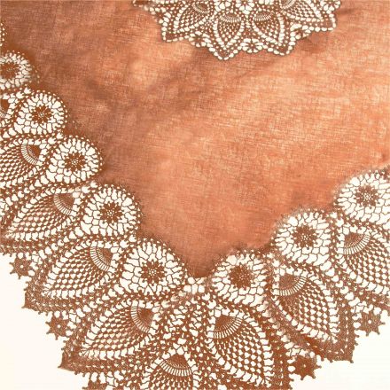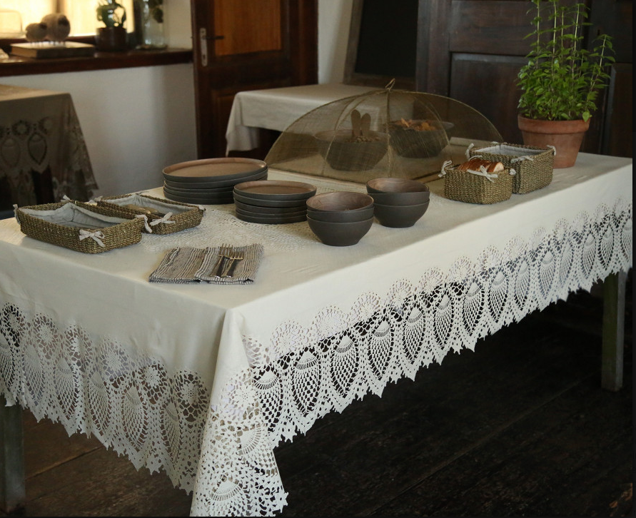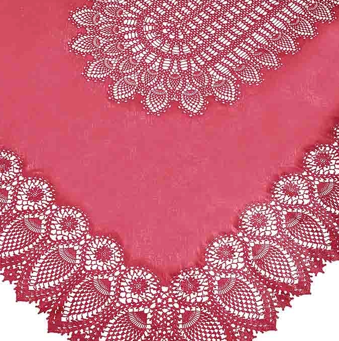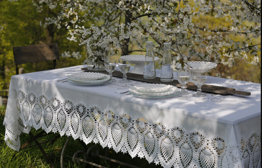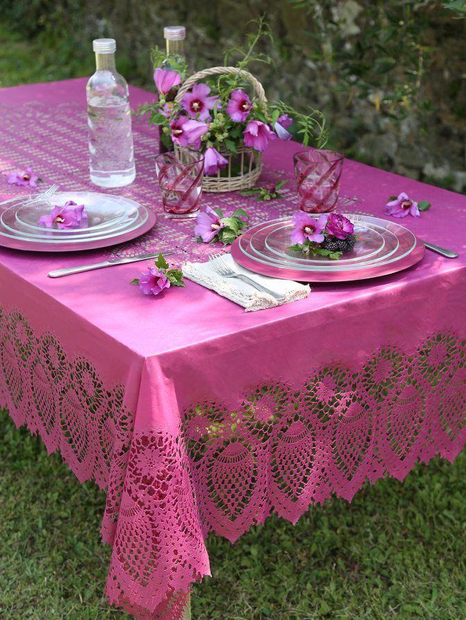 Tovaglia in vinile effetto pizzo. Perfetta per un regalo originale, è in grado di realizzare subito una tavola a festa o in totale semplicità. Idonea ad ogni occasione grazie alla quantità di colori disponibili. Pratica e versatile, può essere pulita quotidianamente con una spugna umida, o lavata in lavatrice a 30°. Stirabile al rovescio a bassa temperatura.