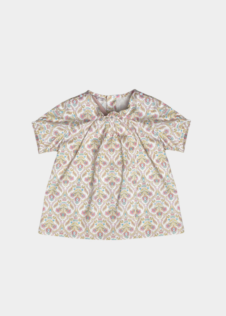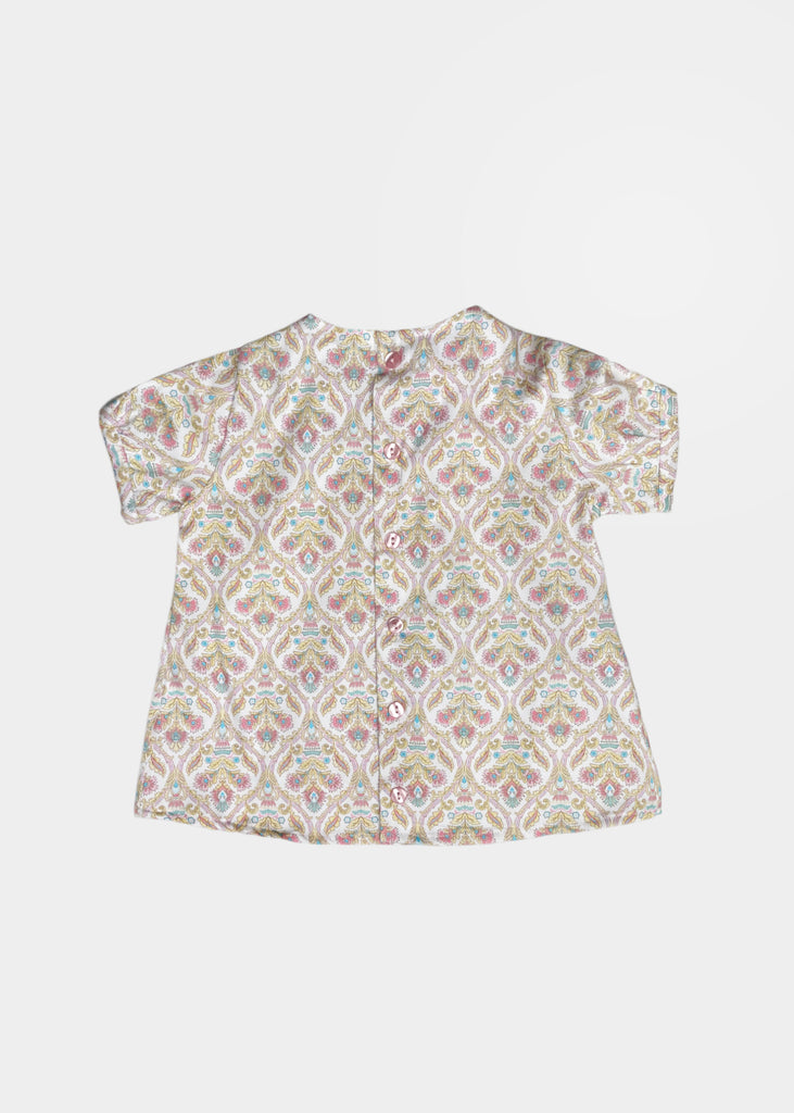 Camicia fantasia 100% cotone con bottoni sul retro.