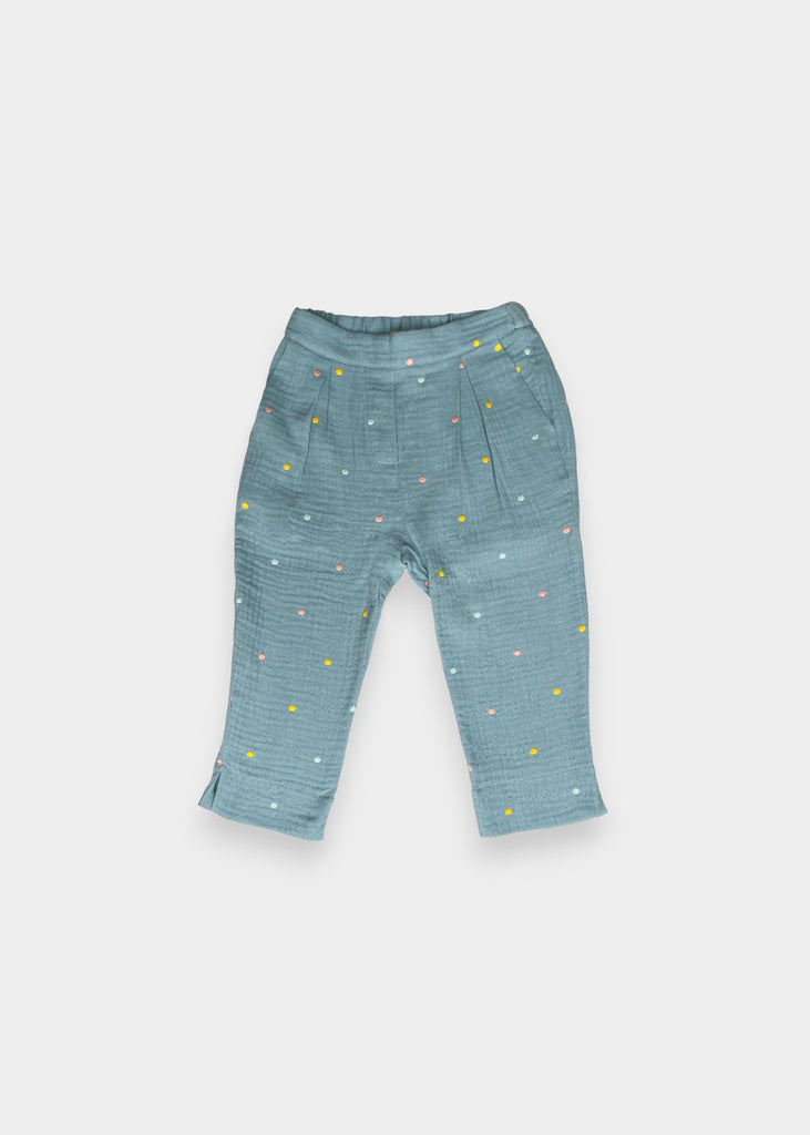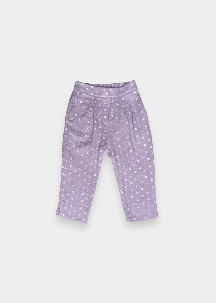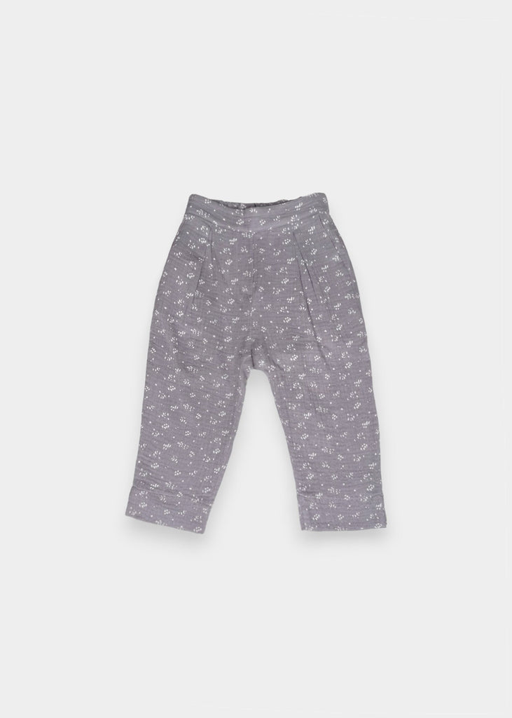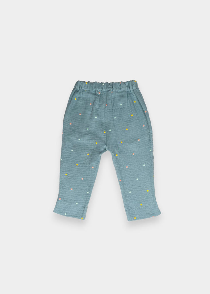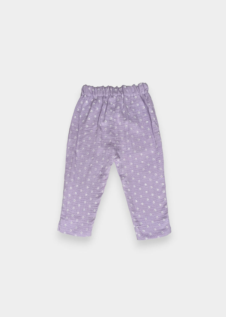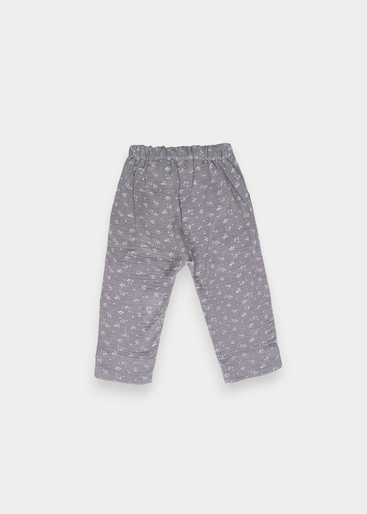 Pantaloni in garza fantasia con elastico in vita.