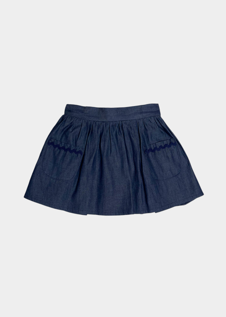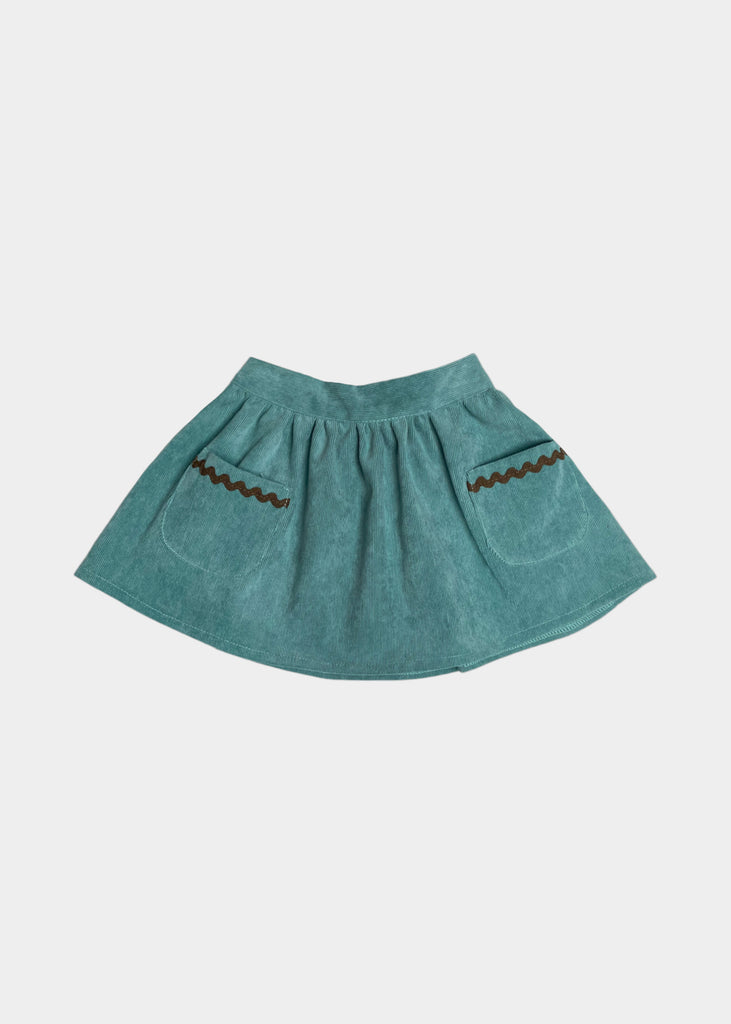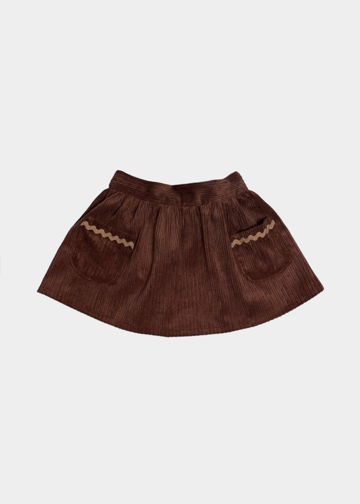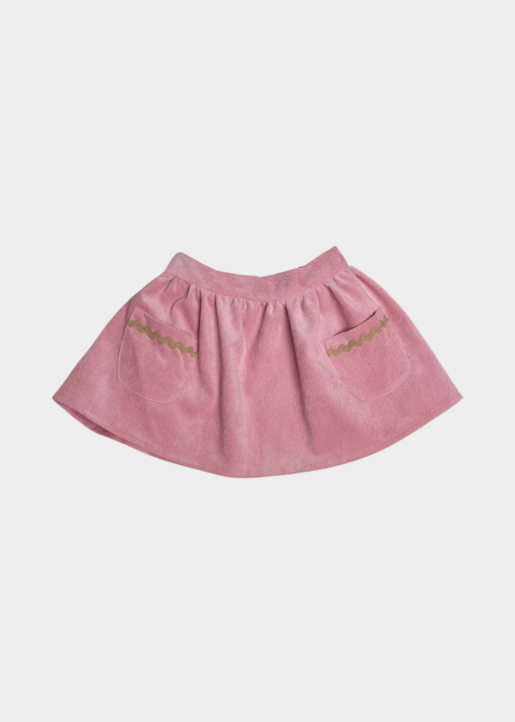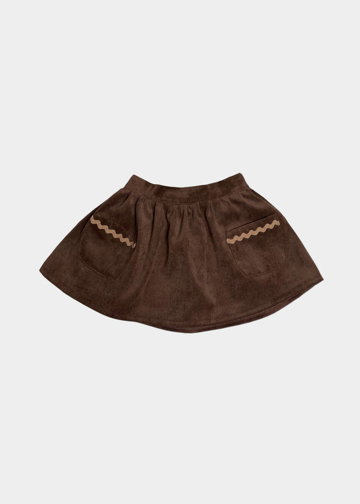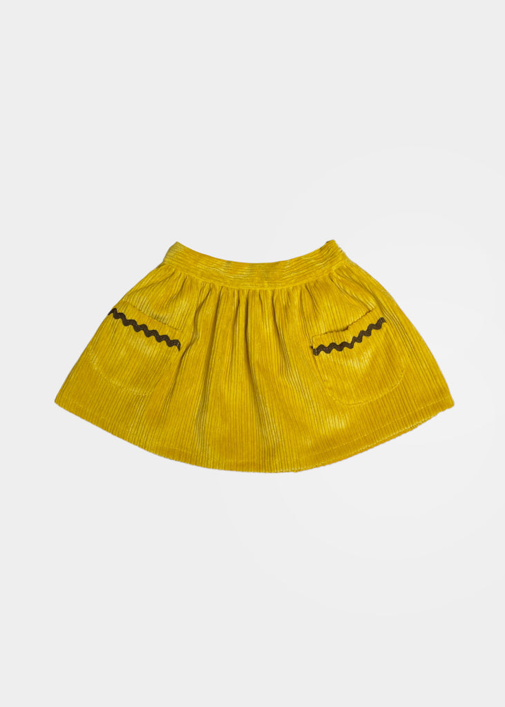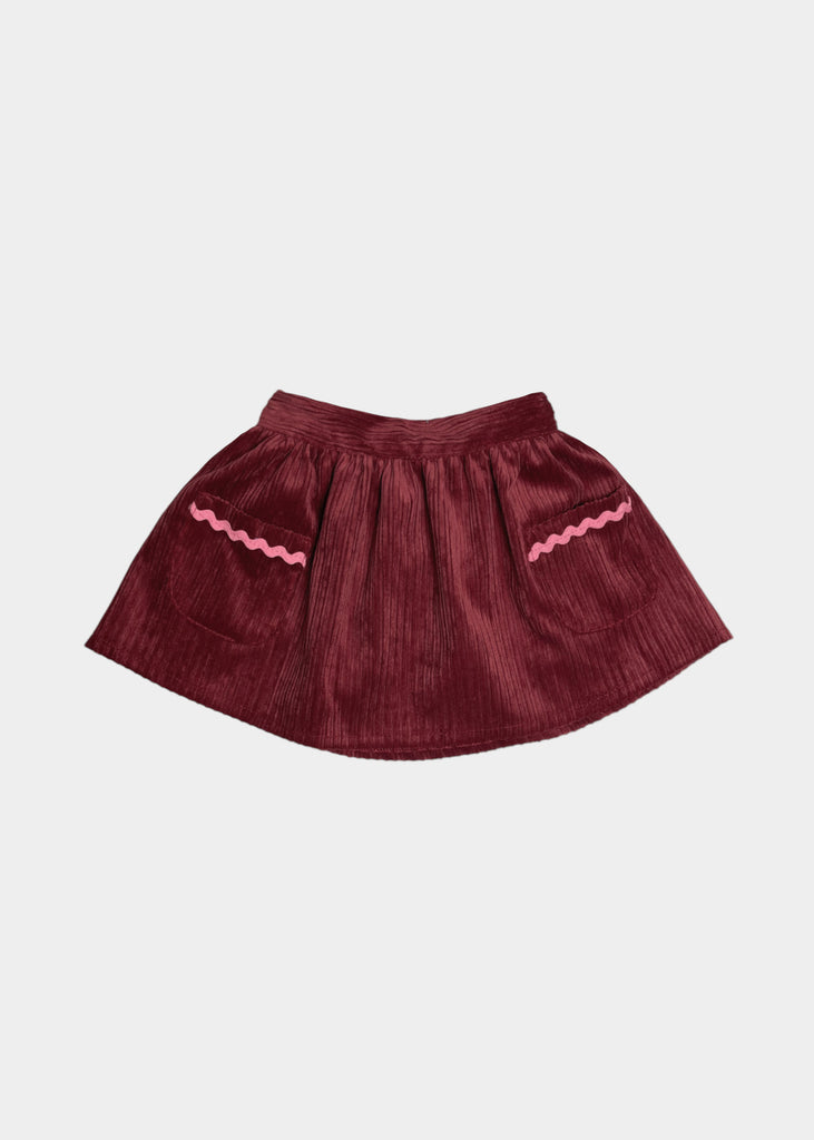 Gonna in velluto con dettagli zig zag sulle tasche.
