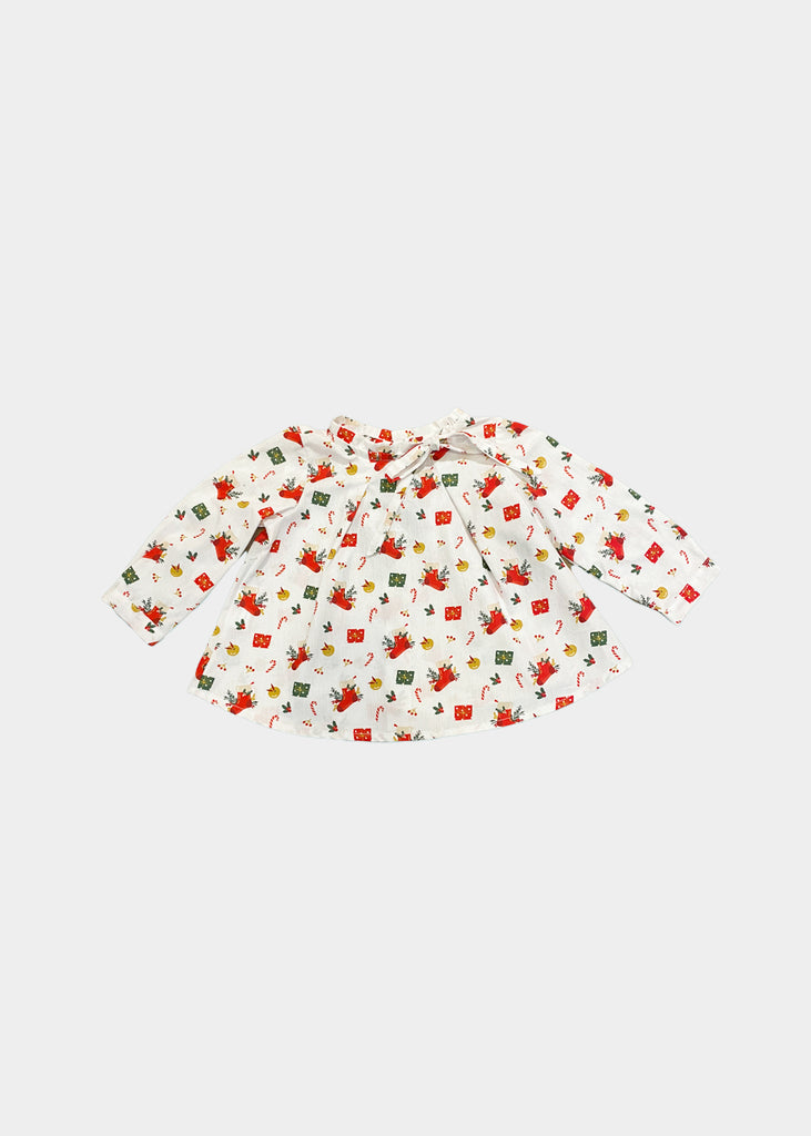 Camicia svasata in 100% cotone, fantasie a tema natalizio.
