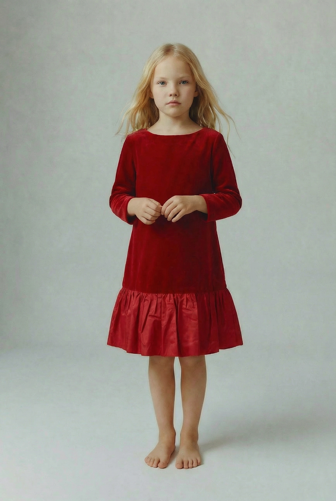 Abito in velluto con maniche tre quarti e cerniera sul retro invisibile.