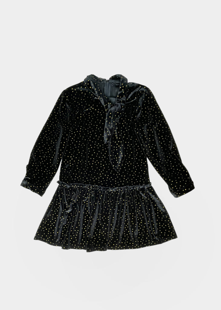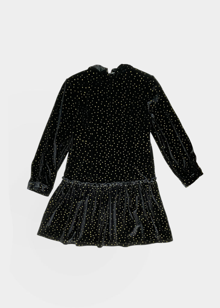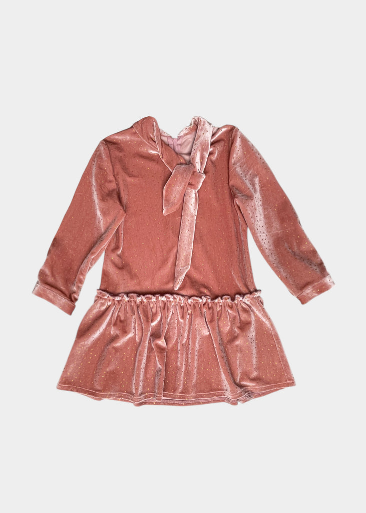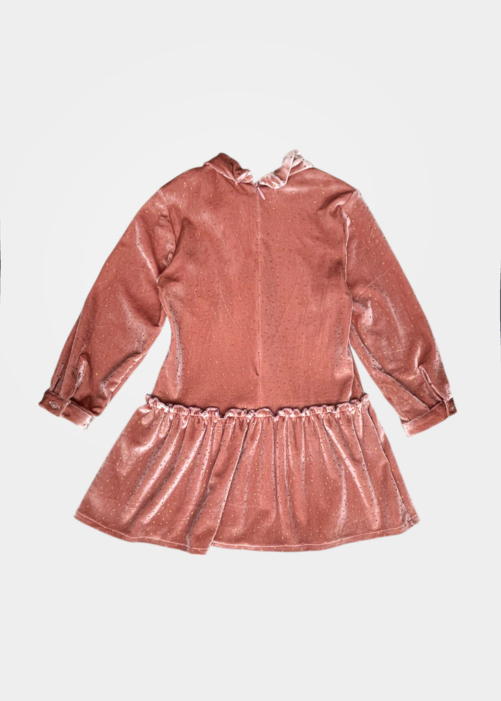 Abito con piccola rouches in vita in velluto brillantinato.