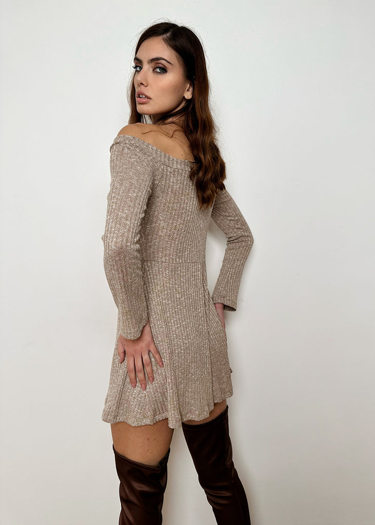 Abito monospalla in tessuto di maglia a costine.