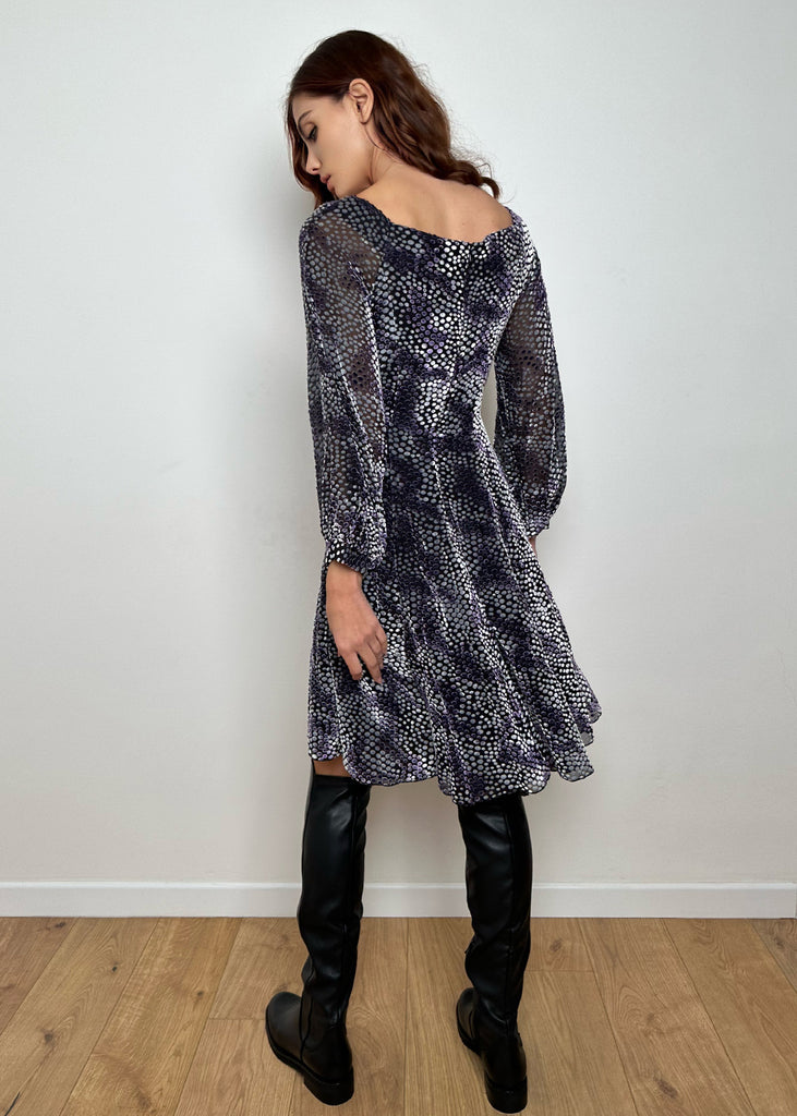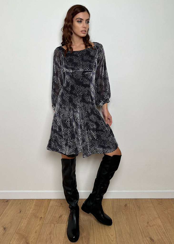 Abito in tessuto di velluto. Modello a telino. Chiusura con zip invisibile sul retro.