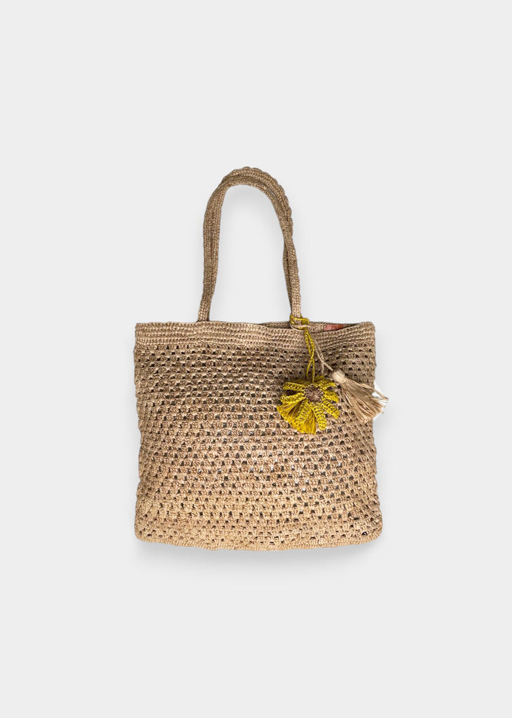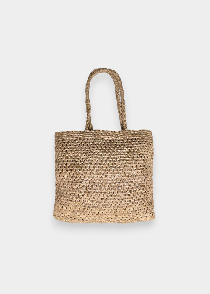 Borsa in raffia 40x37cm. Chiusura con bottone automatico.