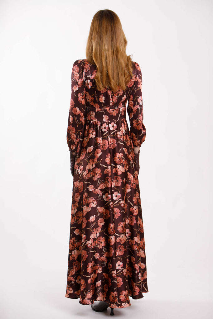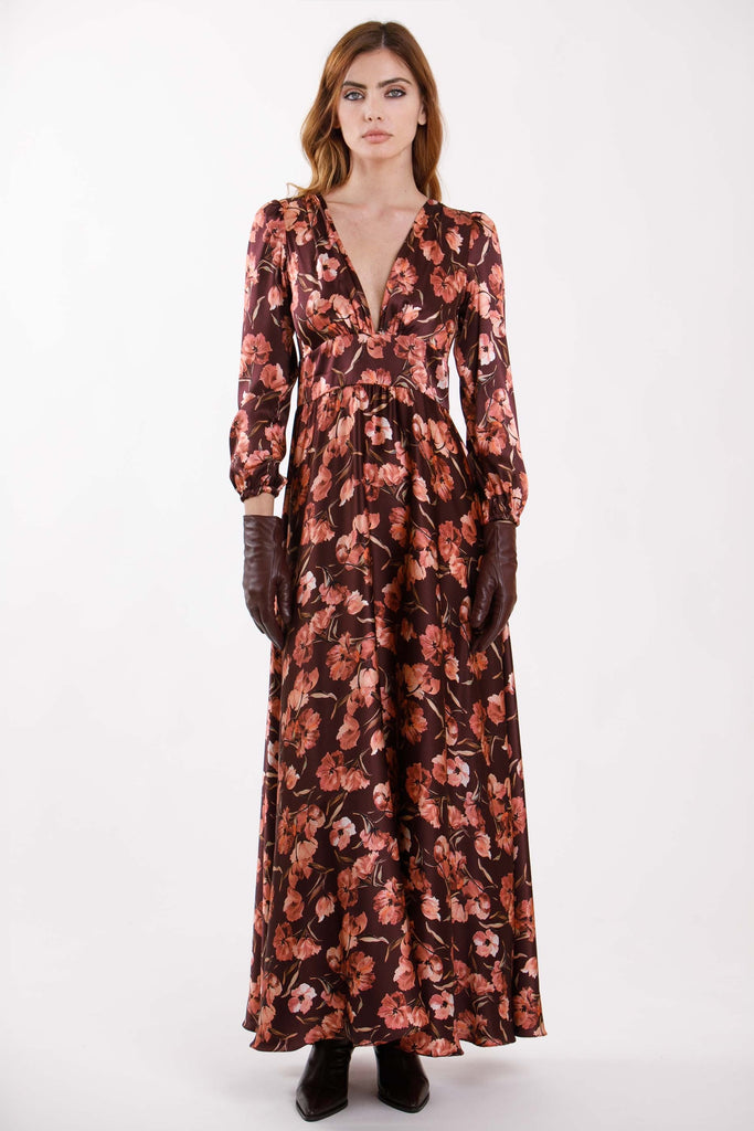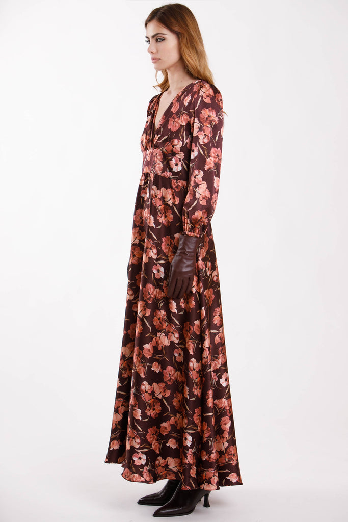 Abito lungo fantasia con scollo a V.