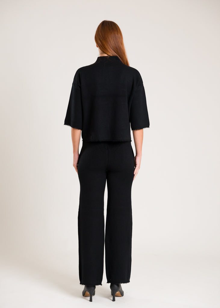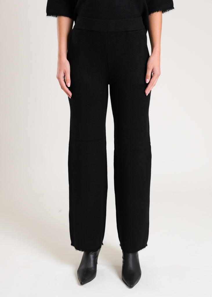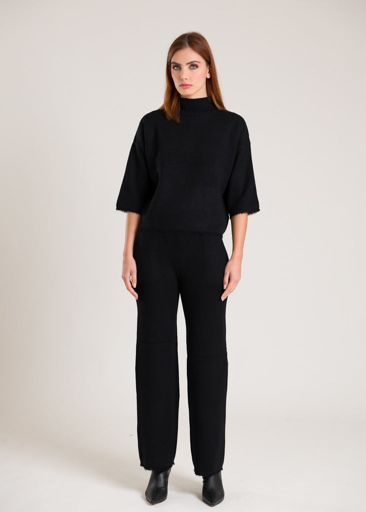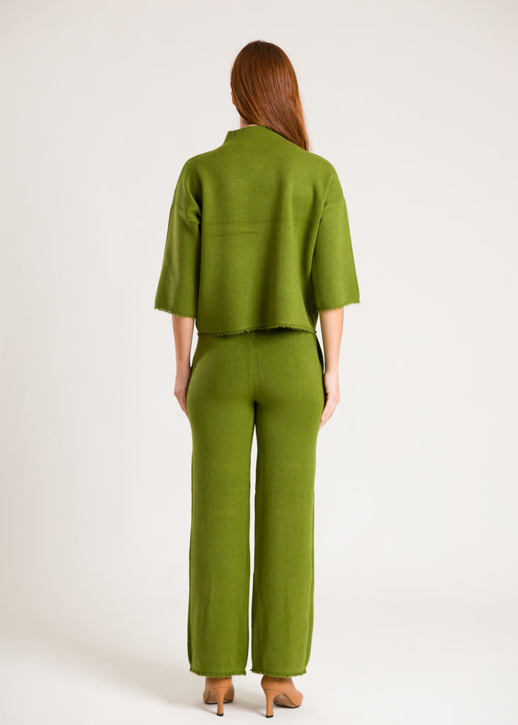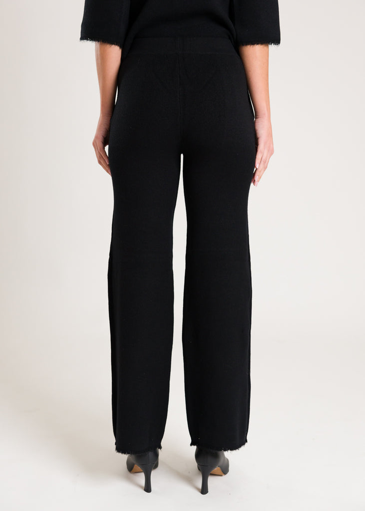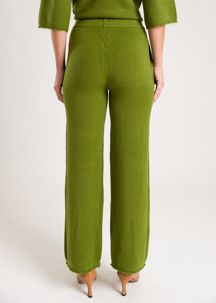 Pantaloni in lana con frange sul fondo.