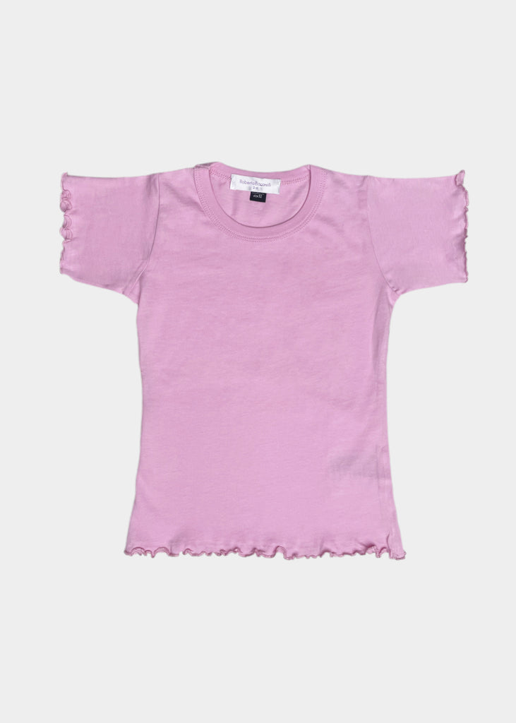 T-shirt in cotone giro collo, mezze maniche rotolino.