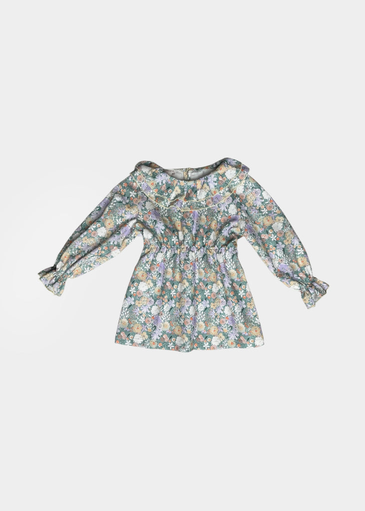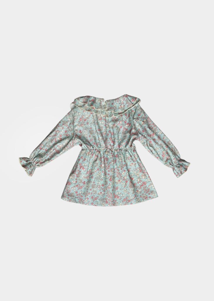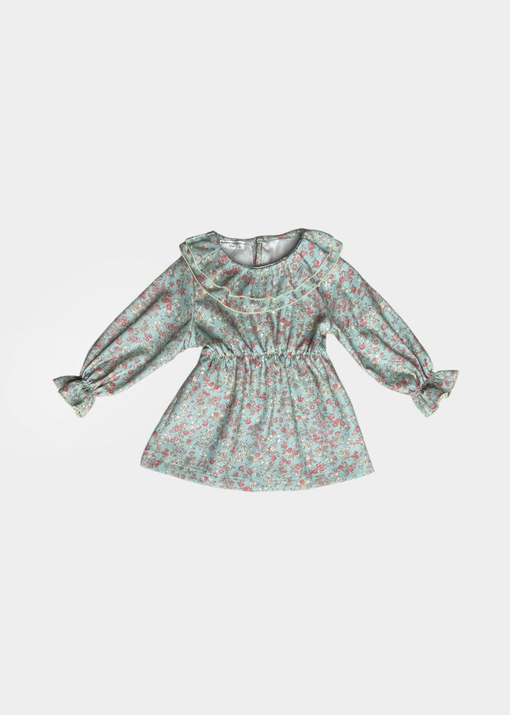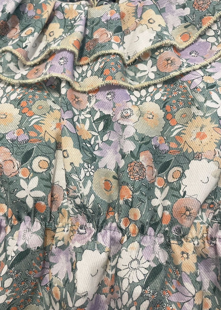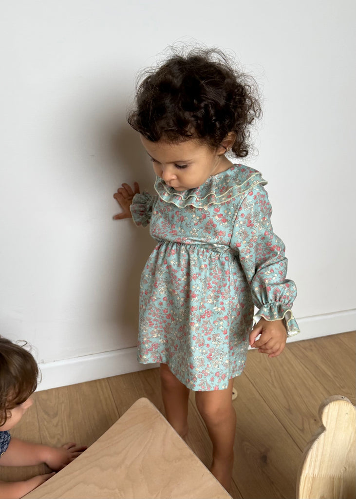 Abitino 100% cotone con doppia rouches e bottoncino sul retro.