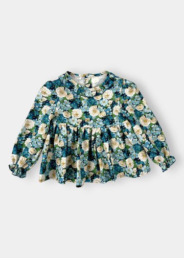 Camicia con collo arricciato in cotone fantasia