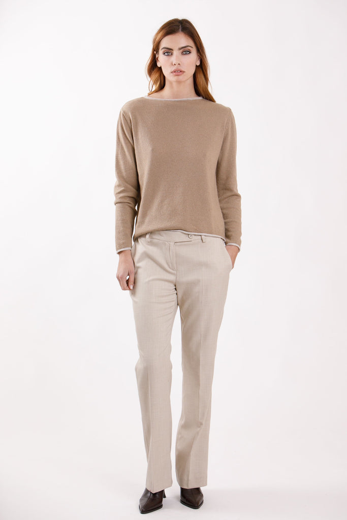 Maglia girocollo rotolino a contrasto.