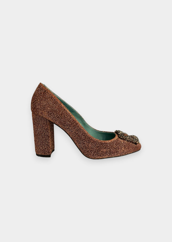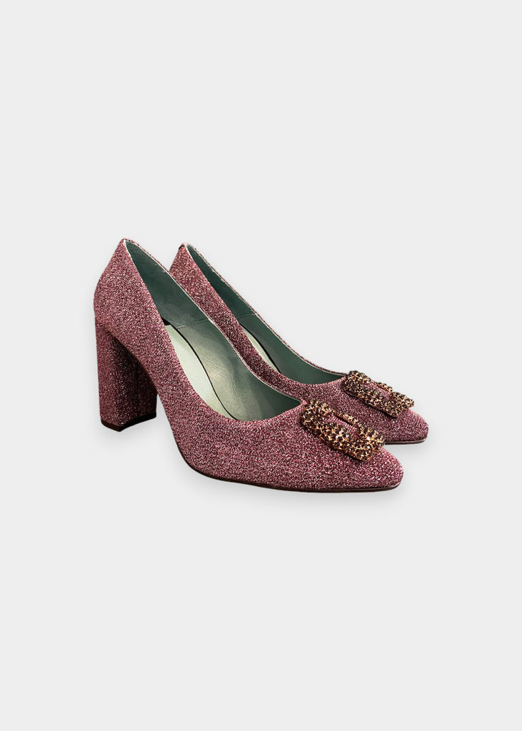 Mocassini in tessuto luccicante con fibbia gioiello.