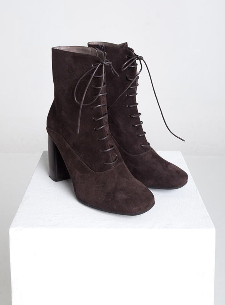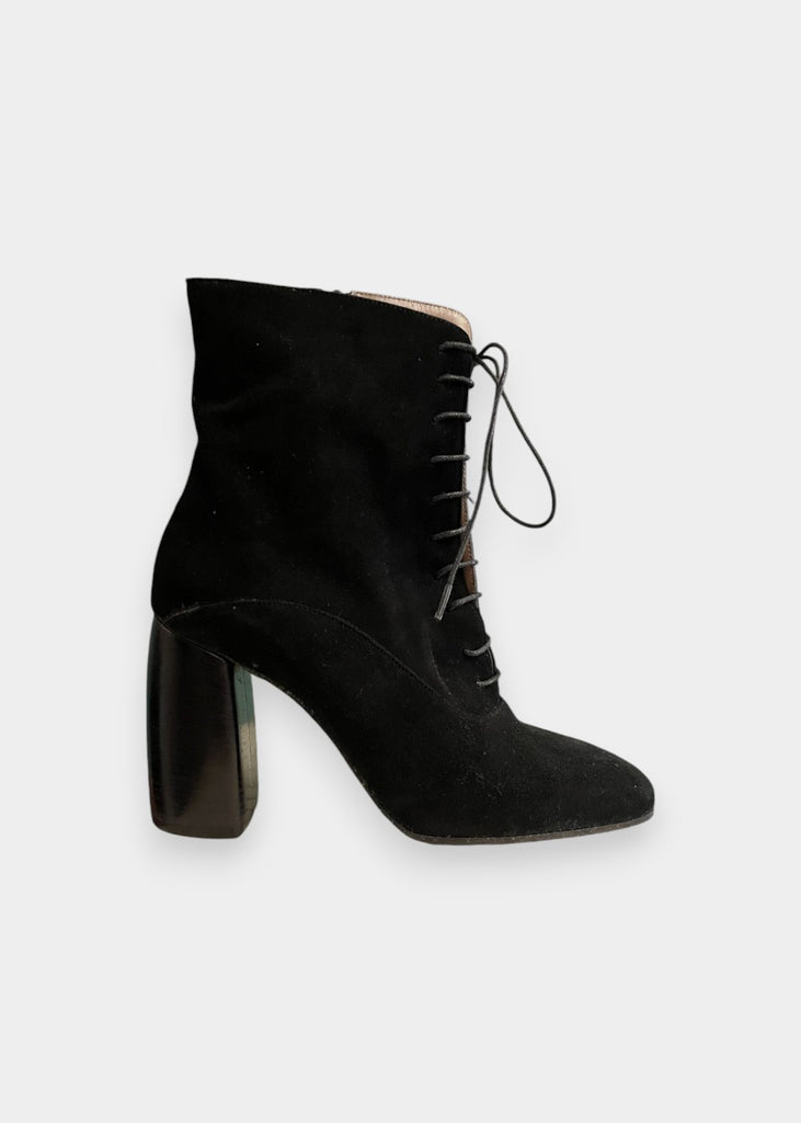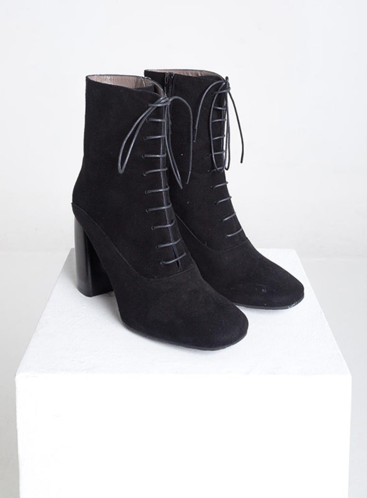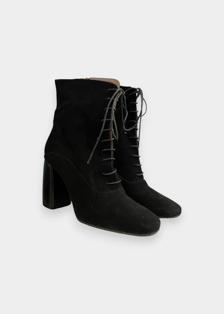 Stivaletti stringati con tacco quadrato e cerniera interna.