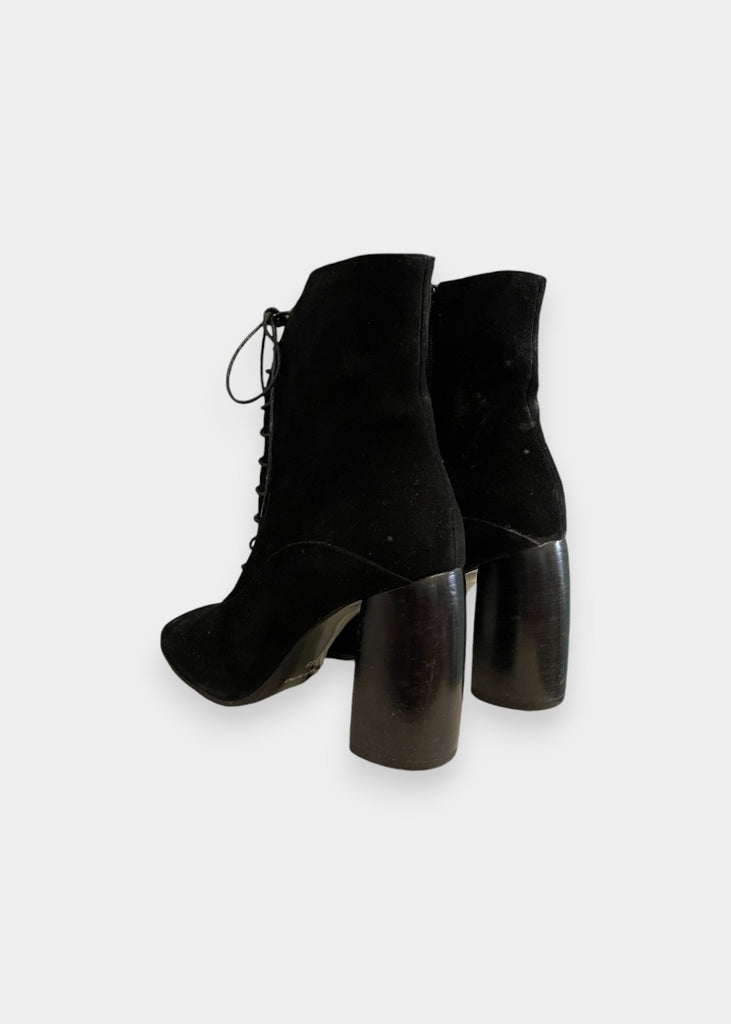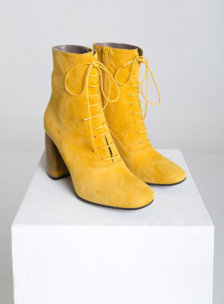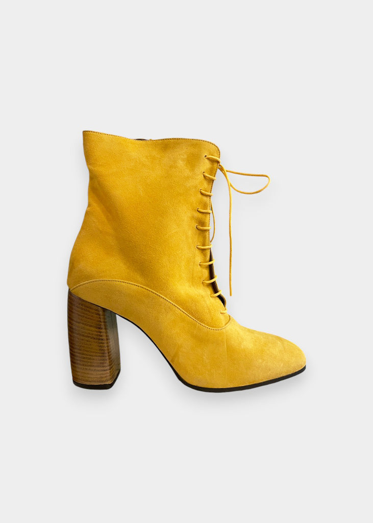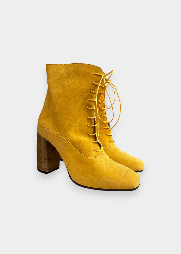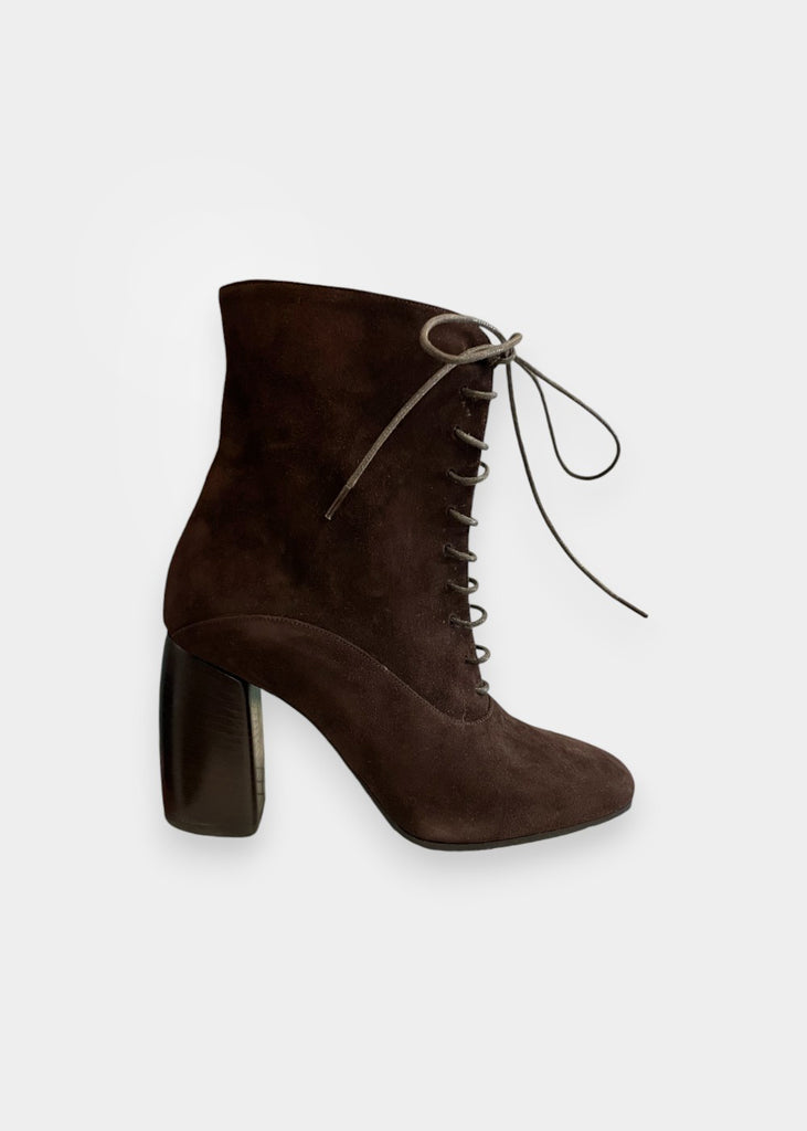 Stivaletti stringati con tacco quadrato e cerniera interna.