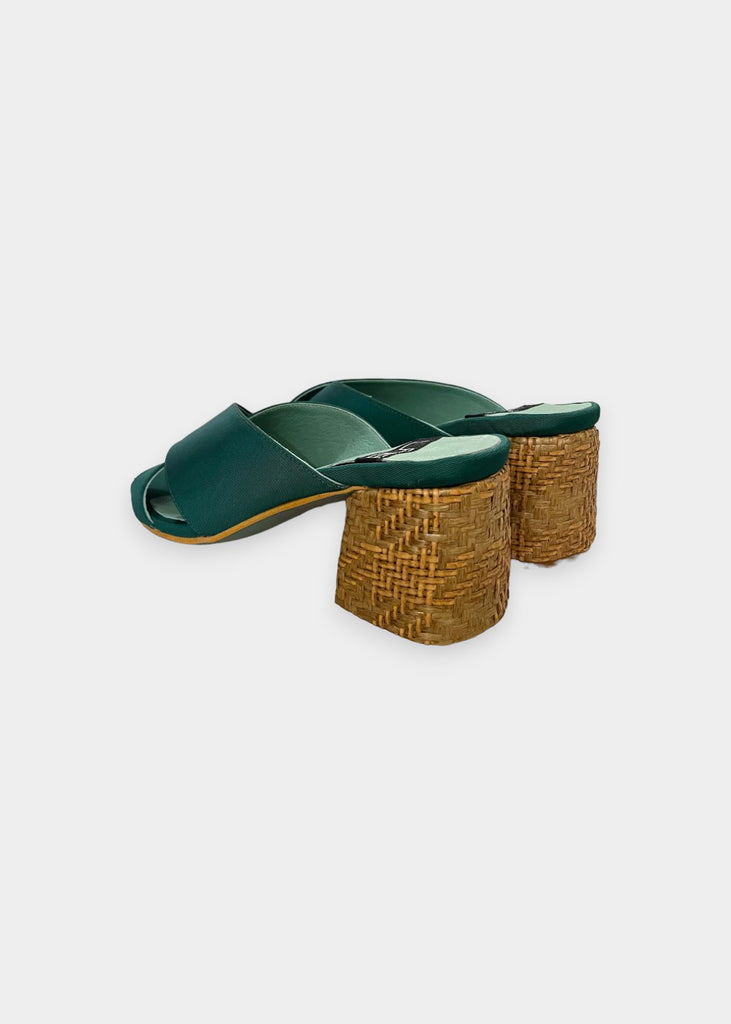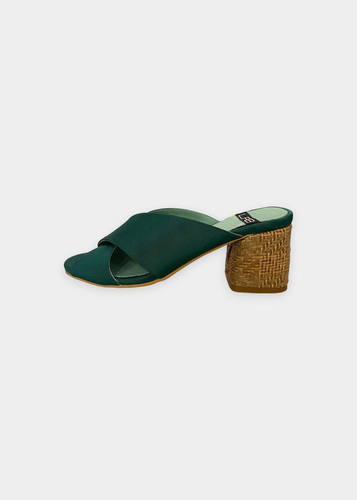 Sandali con fasce e tacco quadrato alto circa 7cm.