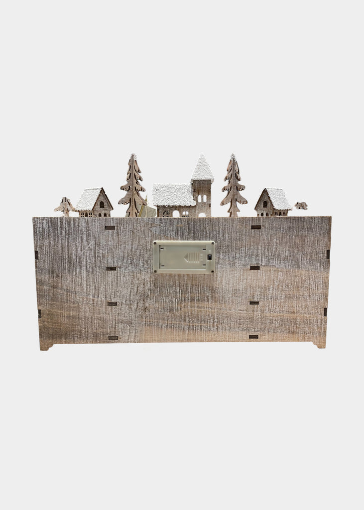 Struttura a forma di casa, alta circa 40-50 cm, realizzata in legno.