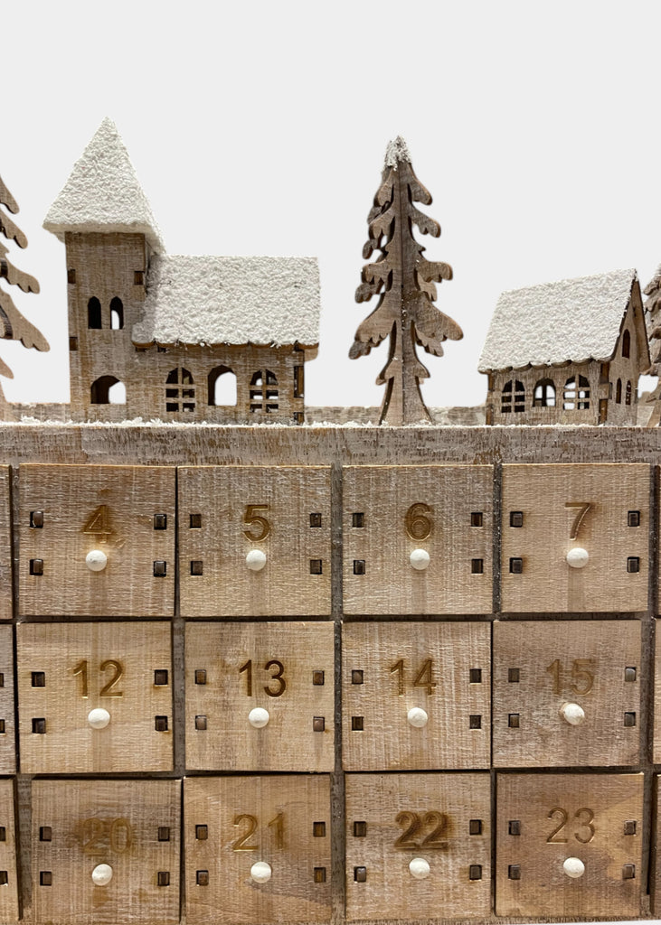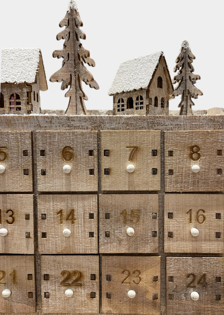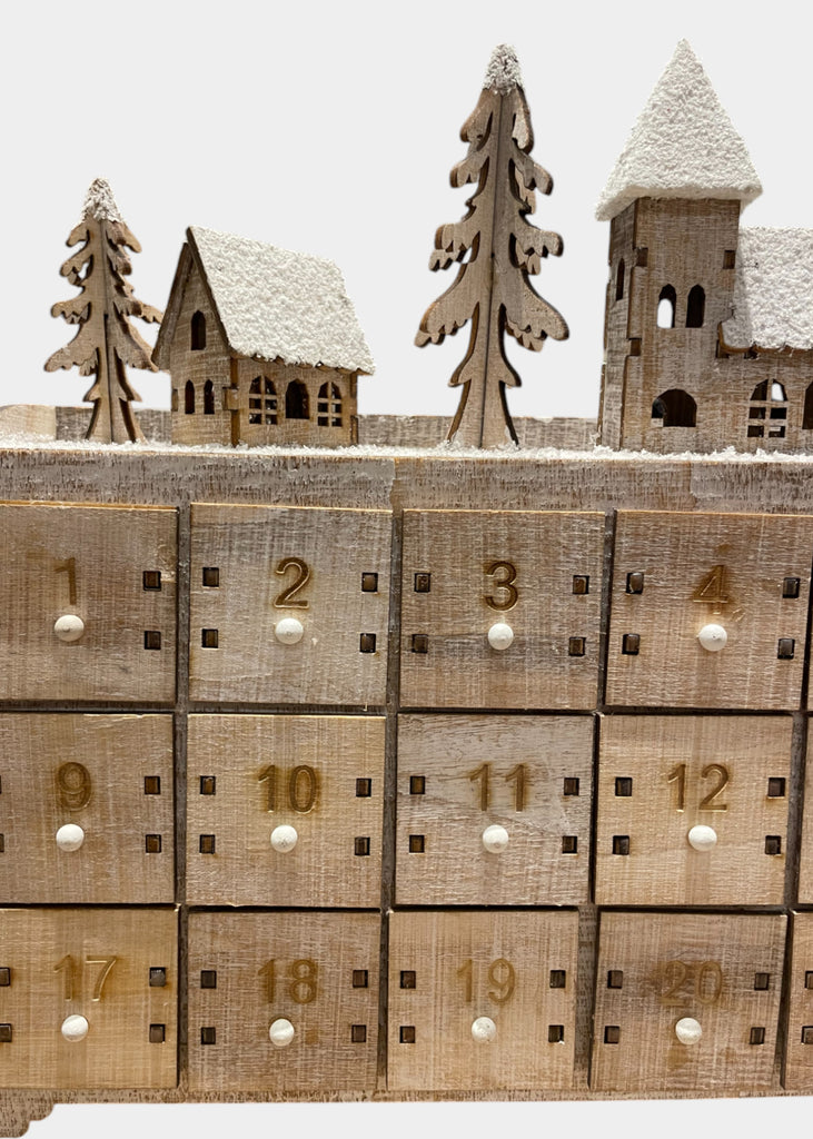 Questa struttura sarebbe perfetta da posizionare su un tavolo o una mensola per un tocco natalizio in più, ideale per coinvolgere tutta la famiglia nella magia del countdown verso il Natale.
